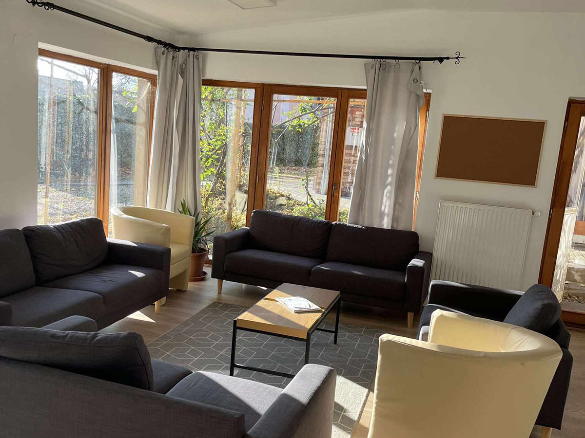 • A kollégium közösségi terei a következők: konyha, nappali, mosókonyha, imaszoba, tanulószoba, udvar, valamint egy közös wc. A konyha teljesen felszerelt, közös evőeszközök, tálak és edények állnak a rendelkezésre. A nappali a közösségi élet középpontja, és ideális rendezvények lebonyolításához is. A mosókonyhában kettő mosógép, illetve egy szárítógép található, melyeket feliratkozásos rendszer alapján lehet használni saját tisztítószerekkel. A közös terek takarítását mi, szakkollégisták végezzük, melyhez a takarítószerek biztosítottak. Az imaszoba egy csendes helyiség, ahová nyugodtan el lehet vonulni egyedül vagy akár többen. A tanulószoba pedig ideális egyéni vagy csoportos tanuláshoz. Az udvaron lehetőség van parkolásra.